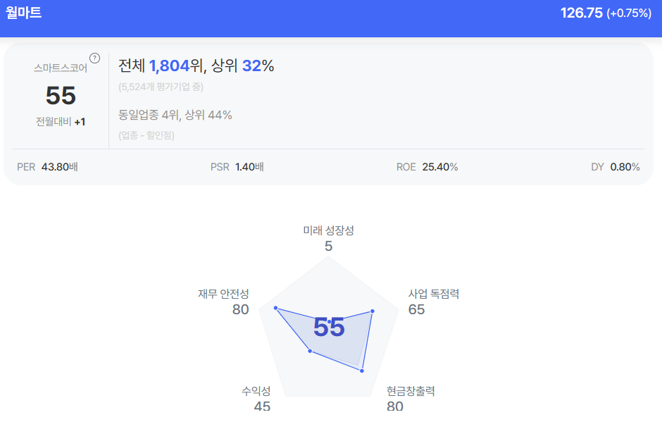 | 월마트 종목진단 (출처=초이스스탁) |