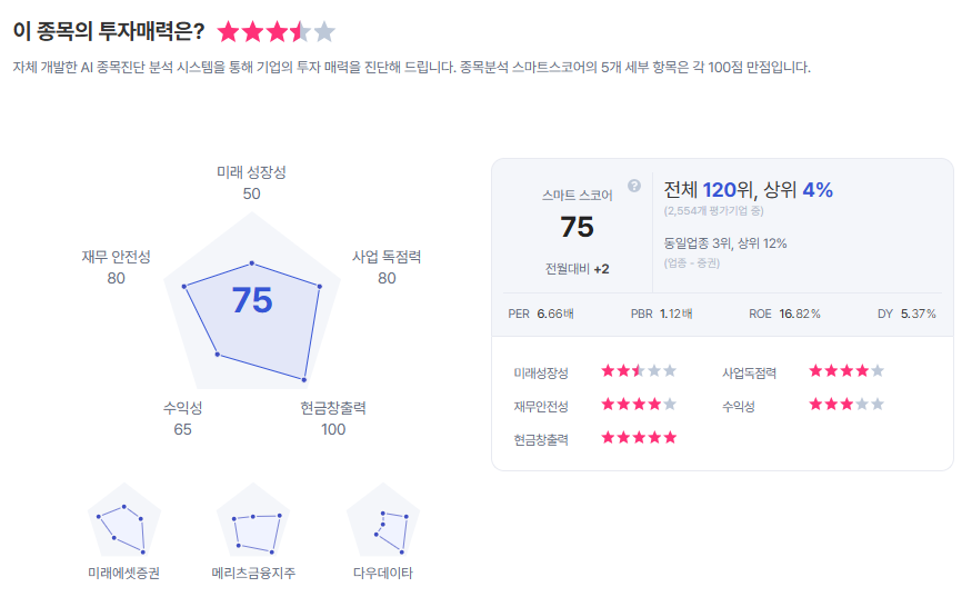 | 한국금융지주 종목진단 (출처=초이스스탁) |
