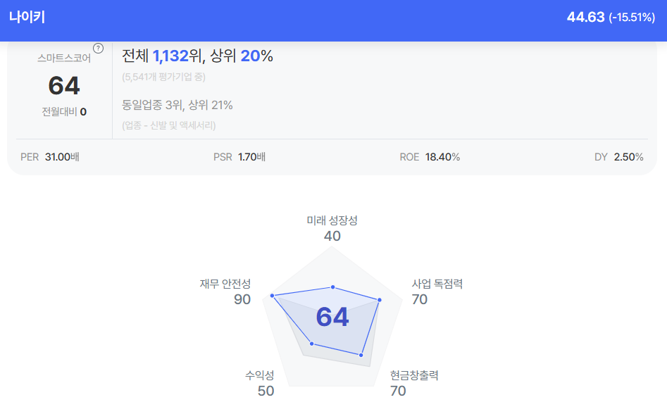 | 나이키 종목진단 (출처=초이스스탁) |