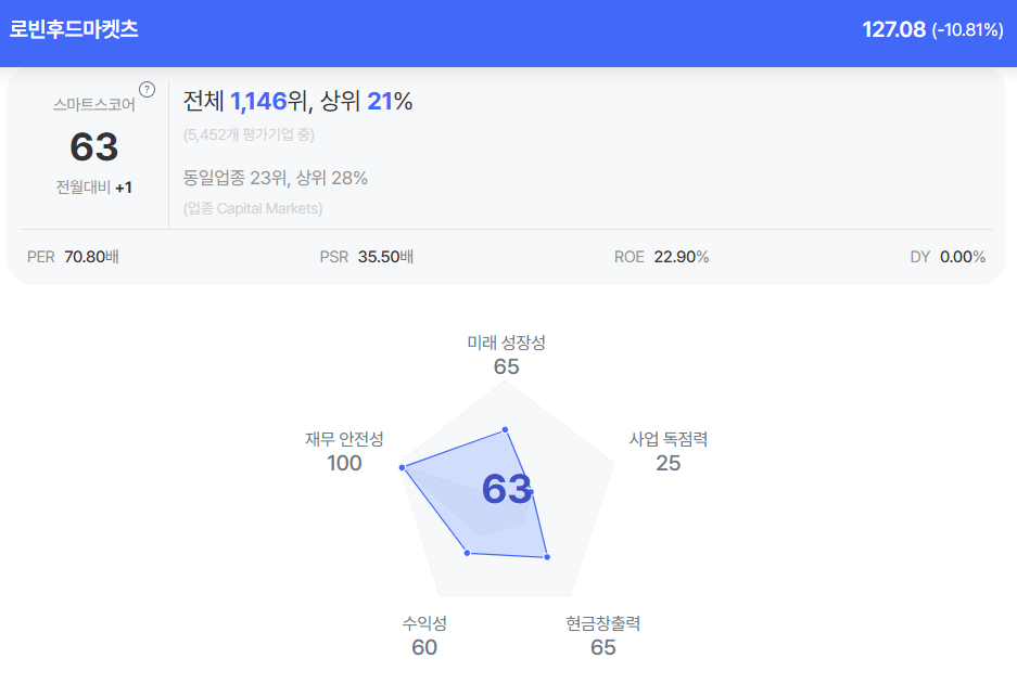 | 로빈후드마켓츠 종목진단 (출처=초이스스탁) |