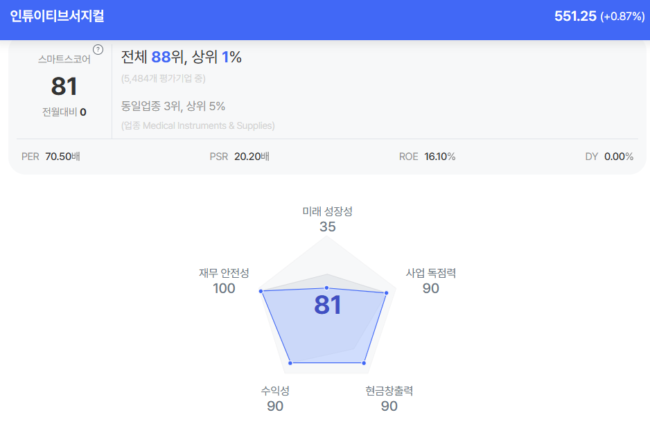 | 인튜이티브서지컬 종목진단 (출처=초이스스탁) |