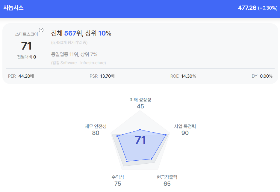 | 시놉시스 종목진단 (출처=초이스스탁) |