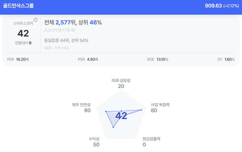 | 골드만삭스 종목진단 (출처=초이스스탁) |
