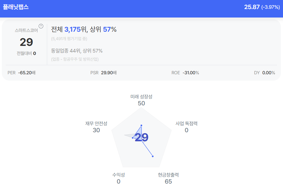 플래닛랩스 종목진단 (출처=초이스스탁)
