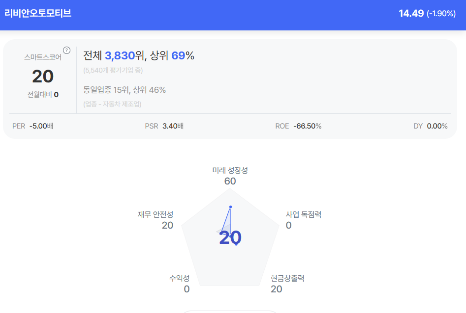 | 리비안 종목진단 (출처=초이스스탁) |