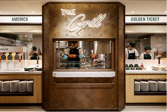 식재료가 돌아가며 구워지는 과정을 실시간으로 볼 수 있는 ‘라이브 그릴 존’을 통해 시각과 후각을 동시에 공략한다.