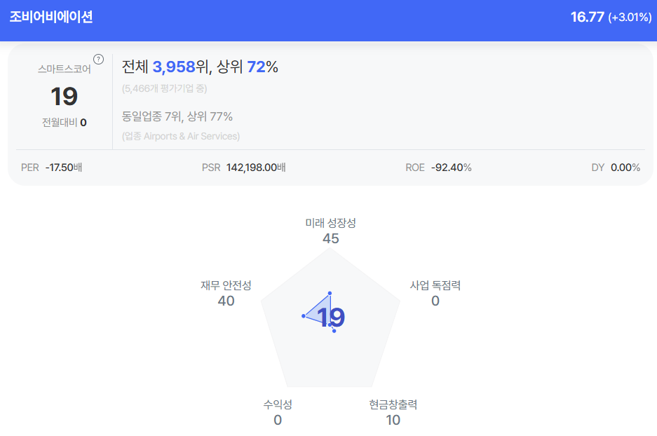 조비어비에이션 종목진단 (출처=초이스스탁)