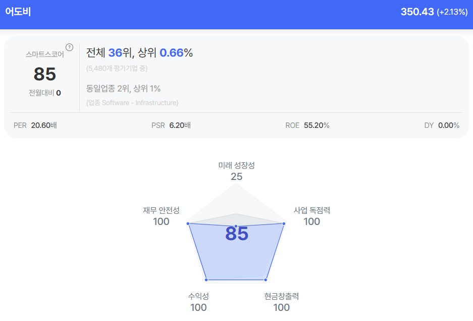 | 어도비 종목진단 (출처=초이스스탁) |