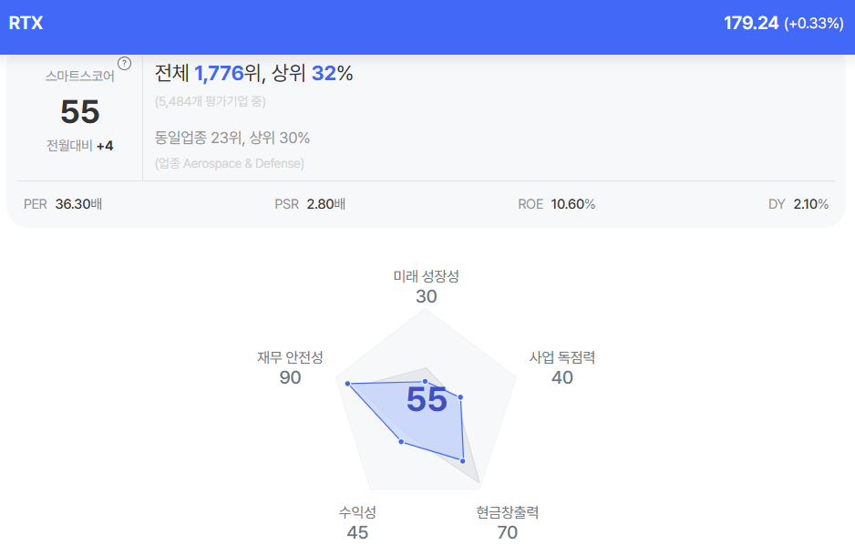 | RTX 종목진단 (출처=초이스스탁) |