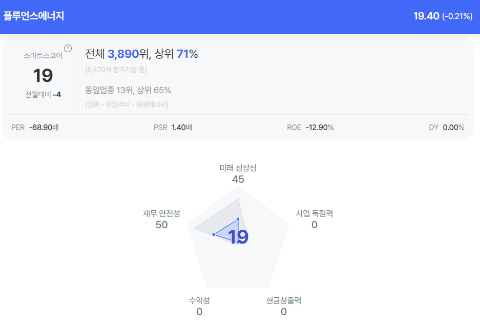 | 플루언스에너지 종목진단 (출처=초이스스탁) |