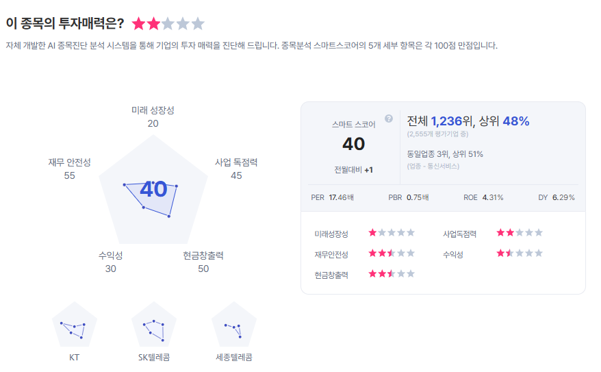 | LG유플러스 종목진단 (출처=초이스스탁) |