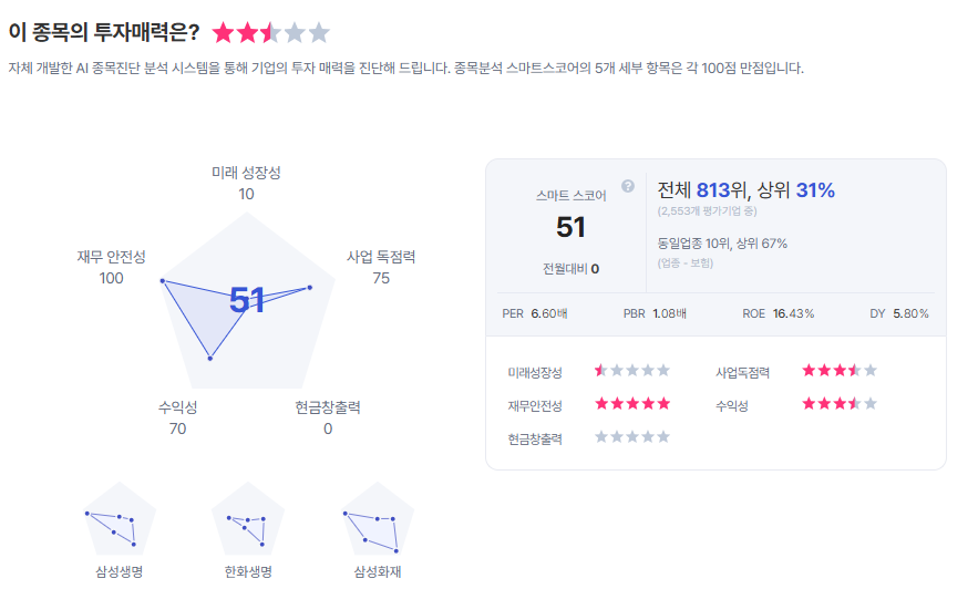 | DB손해보험 종목진단 (출처=초이스스탁) |
