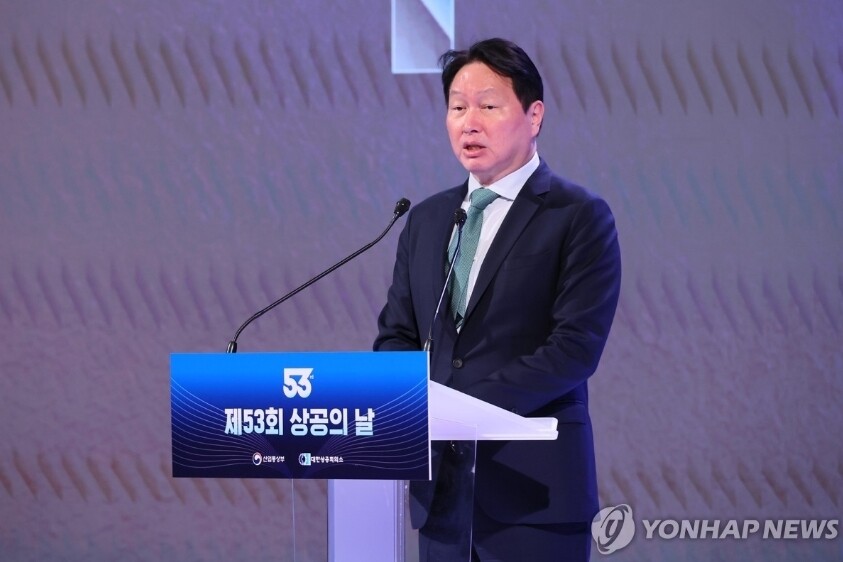 | 최태원 대한상의 회장이 31일 서울 중구 대한상의에서 열린 제53회 상공의 날 기념식에서 기념사를 하고 있다. (사진=연합뉴스) |