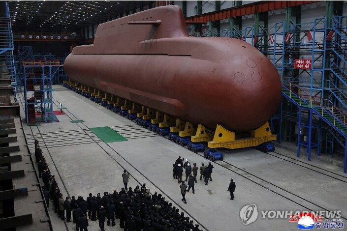 이번 보도를 통해 북한은 지난 3월 처음 공개했던 핵잠수함의 함체 전체 사진을 처음으로 선보였다.