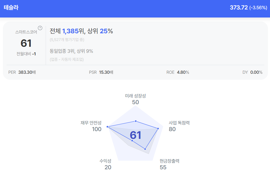 | 테슬라 종목진단 (출처=초이스스탁) |