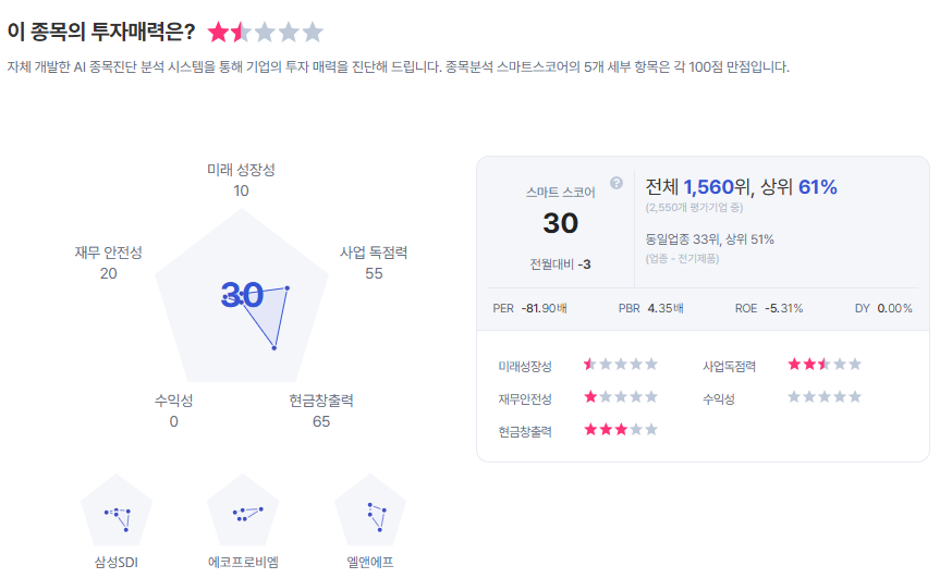 | LG에너지솔루션 종목진단 (출처=초이스스탁) |