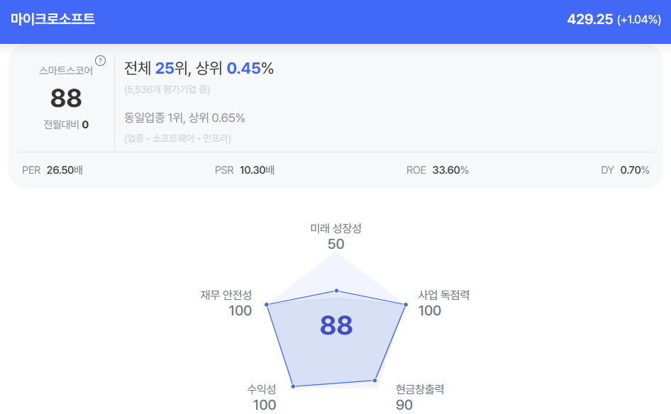 | 마이크로소프트 종목진단 (출처=초이스스탁) |