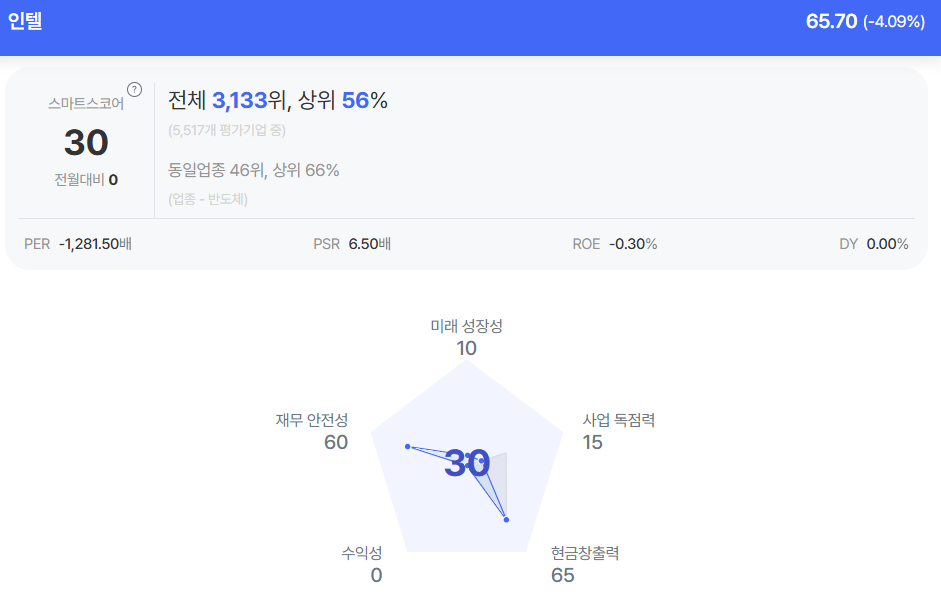 인텔 종목진단 (출처=초이스스탁)