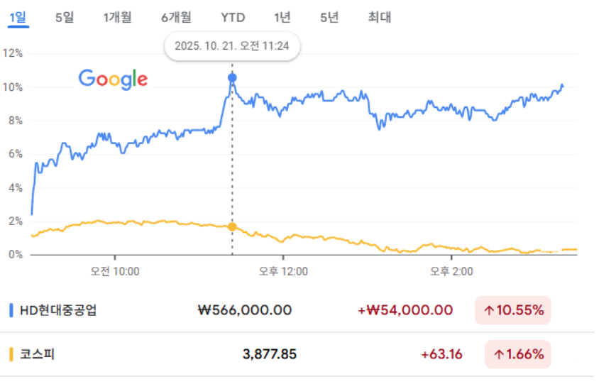 이날 HD현대중공업 외에 한화오션, 삼성중공업은 각각 올랐다.