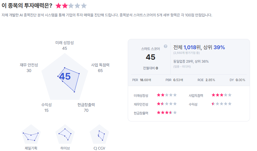 | CJ ENM 종목진단 (출처=초이스스탁) |