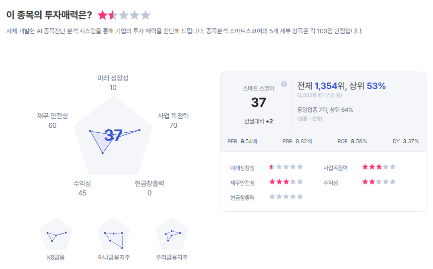 | 신한지주 종목진단 (출처=초이스스탁) |