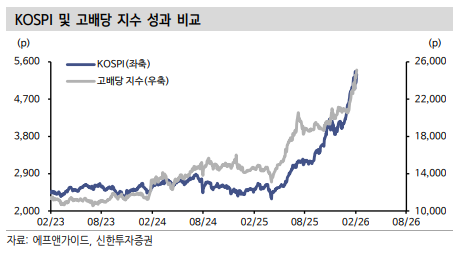 노동길 신한투자증권 연구원은 "올해는 기존의 계절적 요인에 더해 배당소득 분리과세라는 정책 이벤트가 추가됐다"며 "배당 분리과세 제도 도입 자체가 배당 확대 기대를 환기했고 분리과세 혜택을 받을 수 있는 투자자(종합과세자 중심) 관심이 대상 기업으로 집중됐다"고 해석했다.