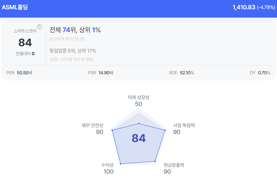 ASML의 현재 12개월 선행 주가수익비율(PER)은 39배 수준으로 직전 5년 평균인 33배를 상회하고 있다.