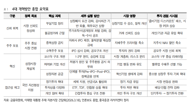 혁신 부문은 코스닥 시장의 구조 개편과 성장자본 공급체계 재정립을 핵심으로 한다.