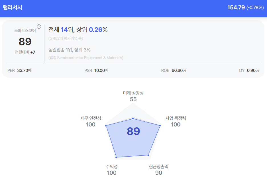 문승환 연구원은 "AI 시대에 따른 반도체 복잡성 증가는 램리서치의 구조적 성장세로 나타나고 있고, 업황은 더할 나위 없이 좋다"며 램리서치를 해외 반도체 장비 업종 톱픽(Top pick)으로 유지했다.