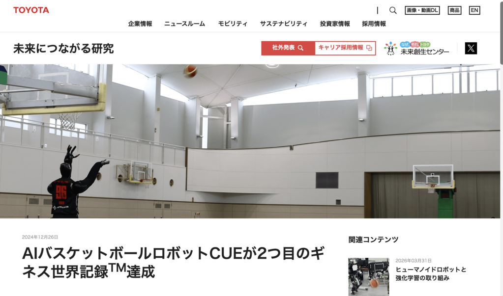 도요타(7203 JP), AI 농구 로봇 'CUE7' 공개