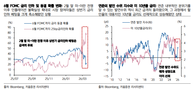 결국 기존 시장이 예상했던 시나리오(연준의 상반기 1회, 하반기 1회 인하)가 수정된 근본적인 배경은 유가 급등 발 에너지 인플레이션 불확실성이었던 것이란 해석이다.