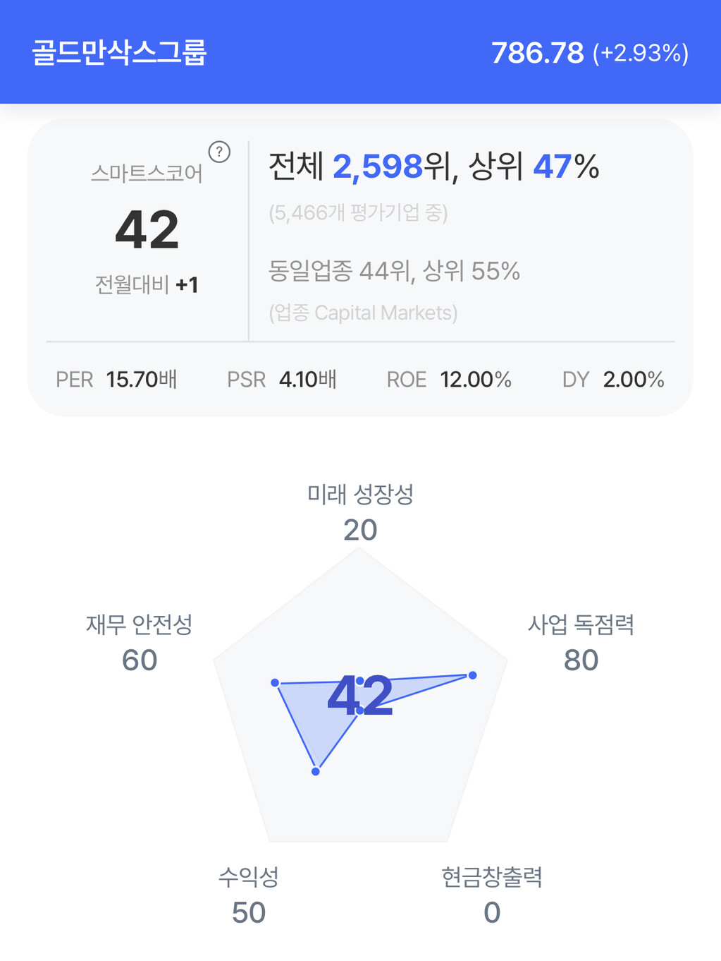 현재 골드만삭스는 3조3천억달러의 자산을 운용하고 있으며, 올해 들어 주가가 37% 상승했다. 주가는  786.78달러는 2.93% 상승 마감했다.