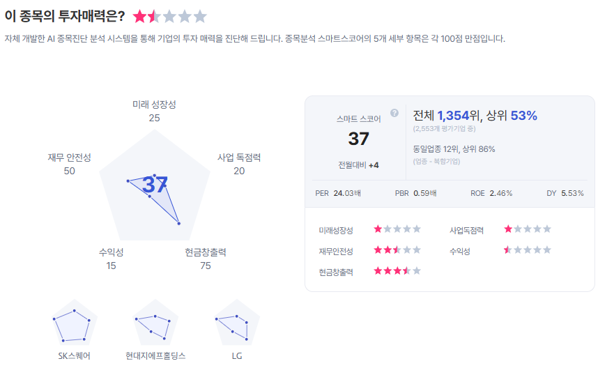 | SK네트웍스 종목진단 (출처=초이스스탁) |