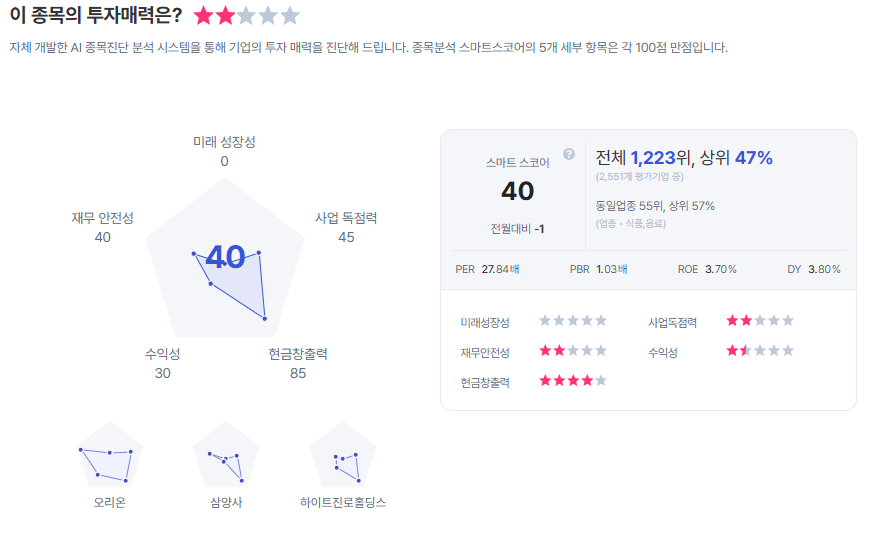 | 하이트진로 종목진단 (출처=초이스스탁) |