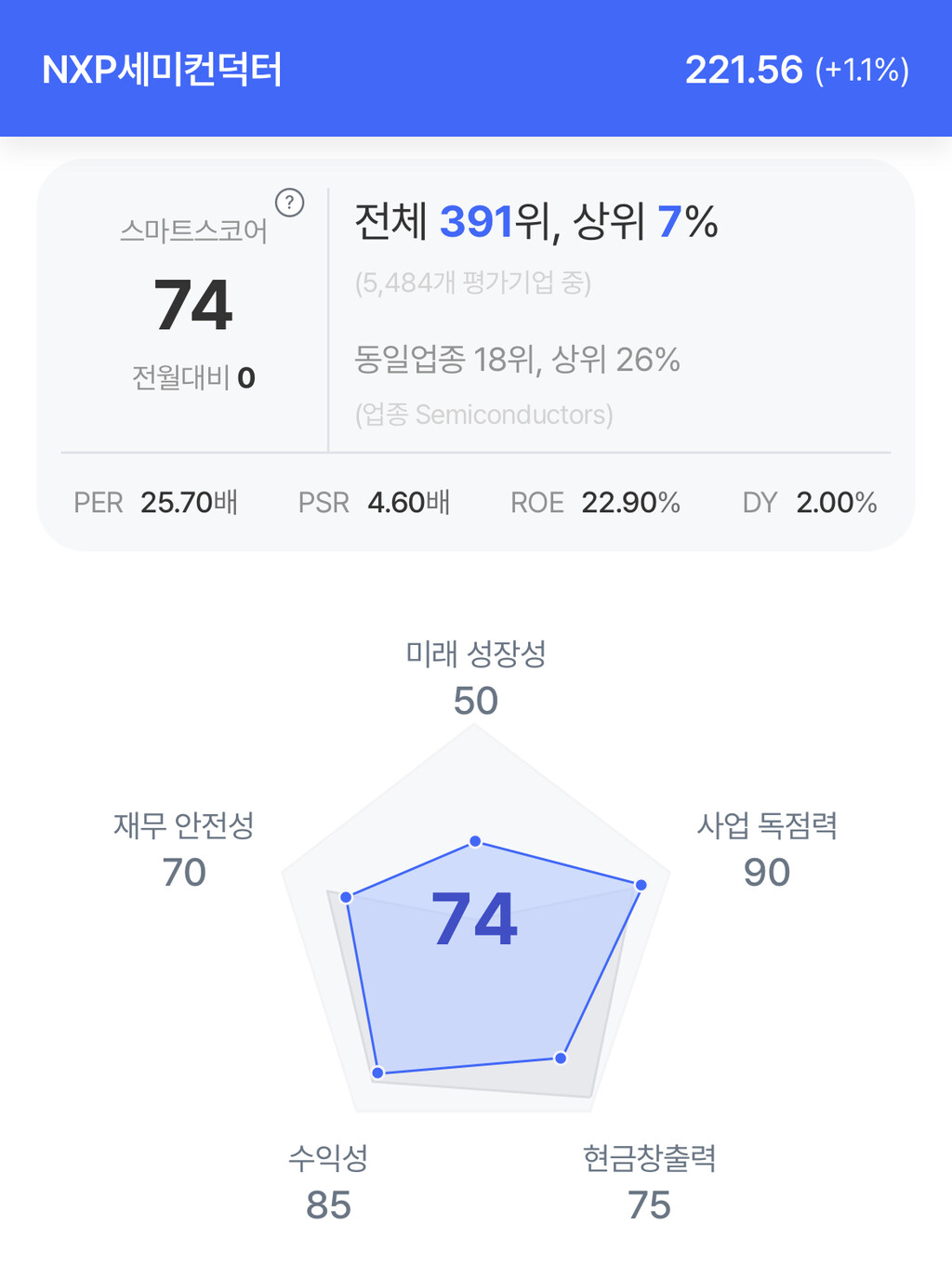NXP 주가는 1.1% 상승 후 221.56달러로 마감했다.