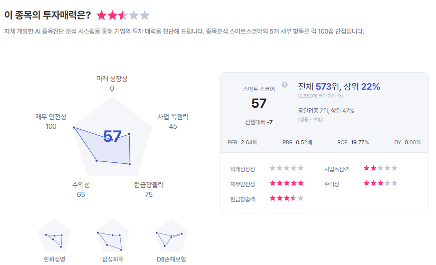 | 현대해상 종목진단 (출처=초이스스탁) |