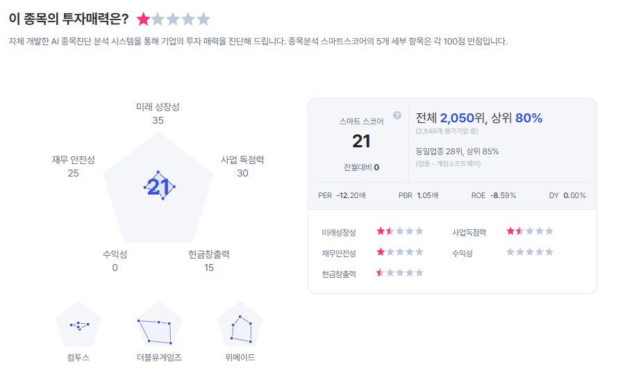 | 카카오게임즈 종목진단 (출처=초이스스탁) |