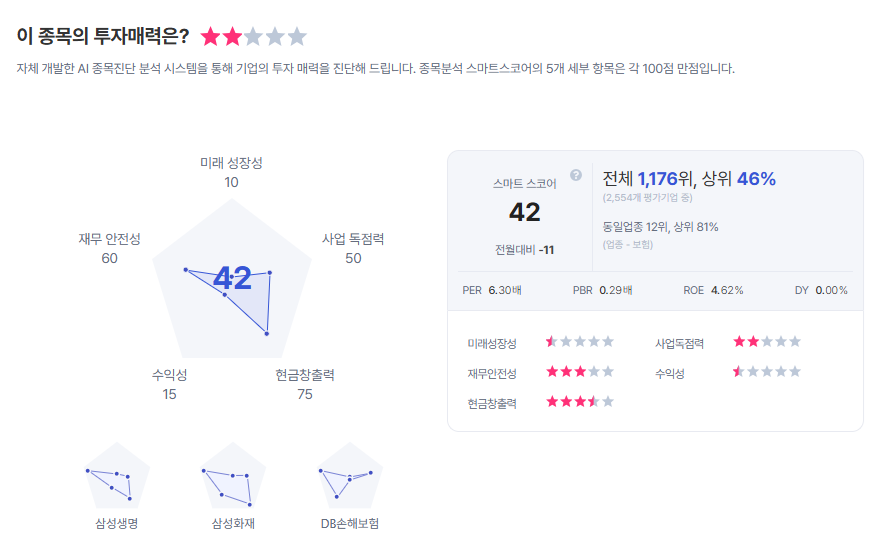 | 한화생명 종목진단 (출처=초이스스탁) |