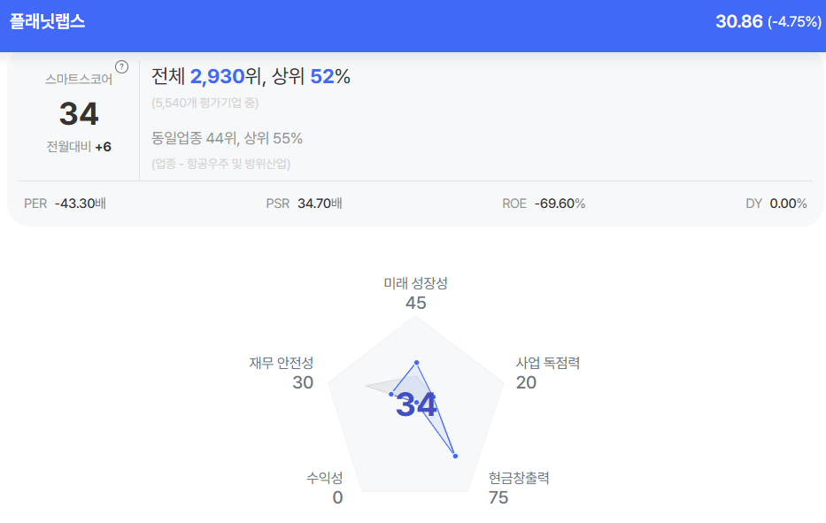 | 플래닛랩스 종목진단 (출처=초이스스탁) |