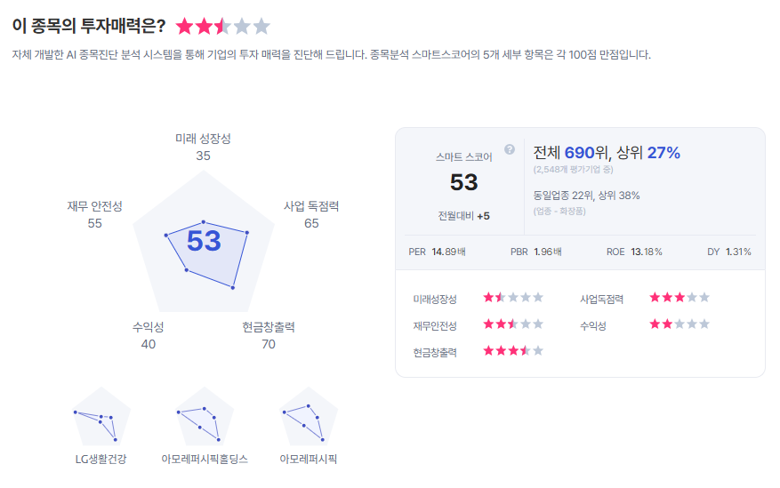 | 한국콜마 종목진단 (출처=초이스스탁) |