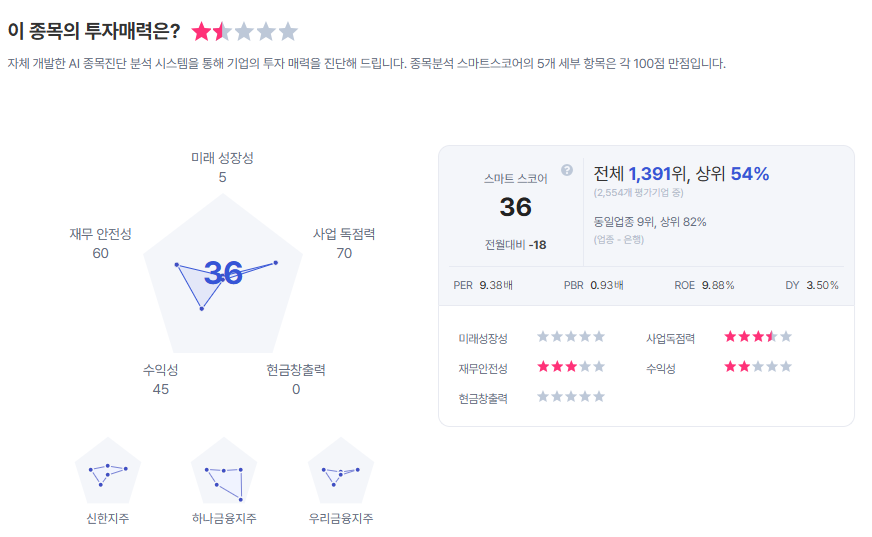 | KB금융 종목진단 (출처=초이스스탁) |