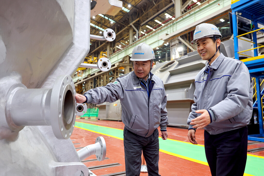 12일 두산그룹에 따르면, 박 회장은 11일 경남 창원 두산에너빌리티 사업장을 방문해 발전용 가스터빈 공장과 소형모듈원전(SMR) 주기기 제작라인을 점검했다.