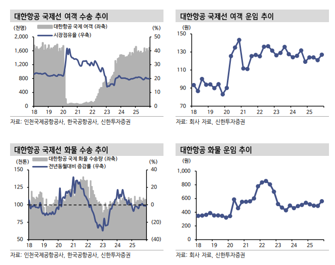 항공화물 매출액은 전년 동기 대비 3.5% 증가한 1조 906억원으로 AI 인프라 관련 고부가 화물 수요 강세가 지속되며 견조한 실적을 기록했다.