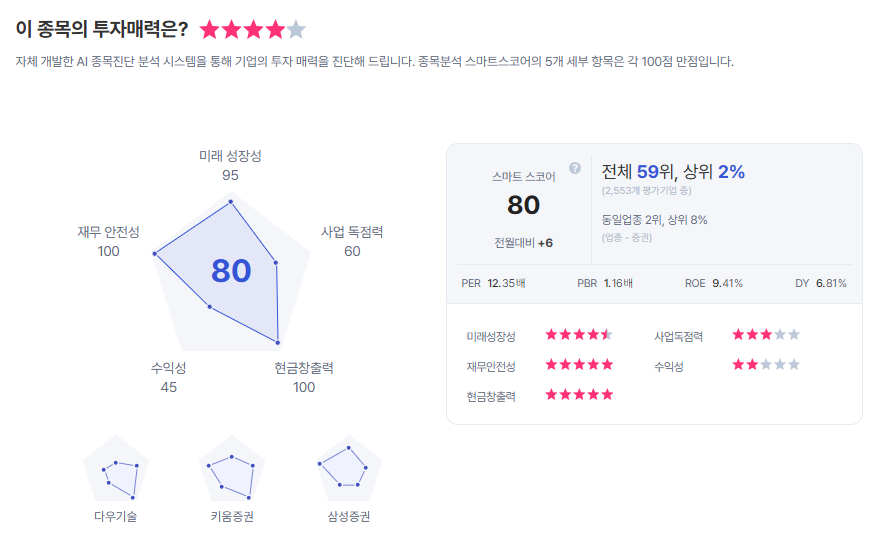 | NH투자증권 종목진단 (출처=초이스스탁) |