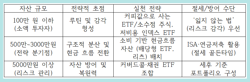 소비 패턴을 포트폴리오로 전환하는 전략은 자산 규모에 따라 초점을 달리해야 한다. 투자 구조는 현재 나의 조건에 맞춰 설계될 필요가 있기 때문이다.