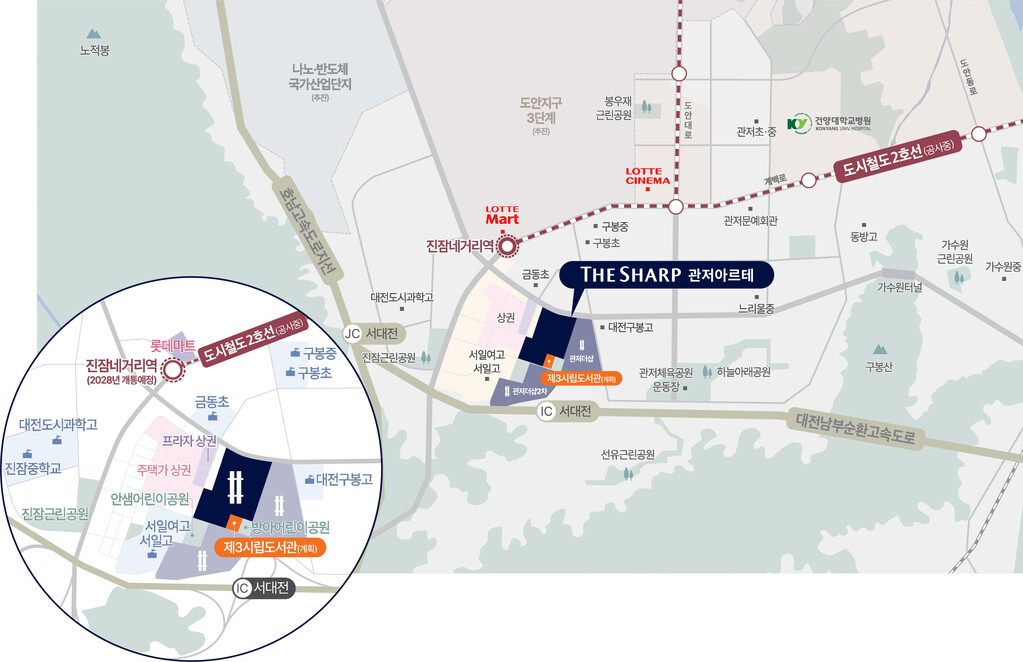 특히 관저지구 내 기존 더샵 단지들과 함께 거대한 브랜드타운을 형성하게 된다는 점에서 지역민들의 관심이 높다.