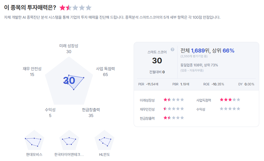 | 한온시스템 종목진단 (출처=초이스스탁) |