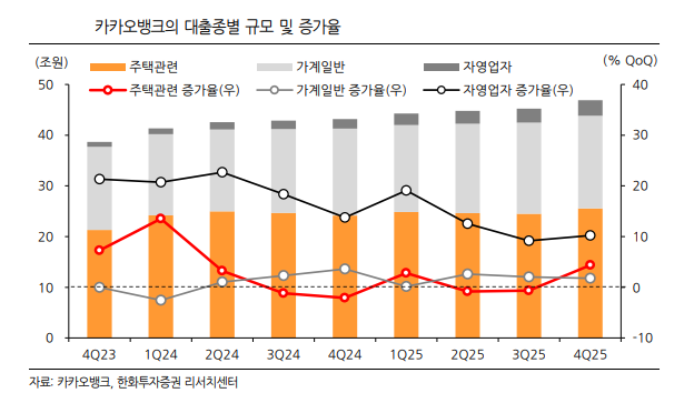 전배승 LS증권 연구원은 "저축성수신의 리프라이싱 효과로 조달비용이 감소한 영향으로 3분기 11bp 하락했던 NIM이 4분기 중 13bp 반등했다"라며 "25년 대출성장률은 9%를 기록했으며, 26년에도 유사한 성장 목표를 설정하고 있어 NIM 안정과 함께 이자이익 증가 폭 확대가 예상된다"라고 말했다.