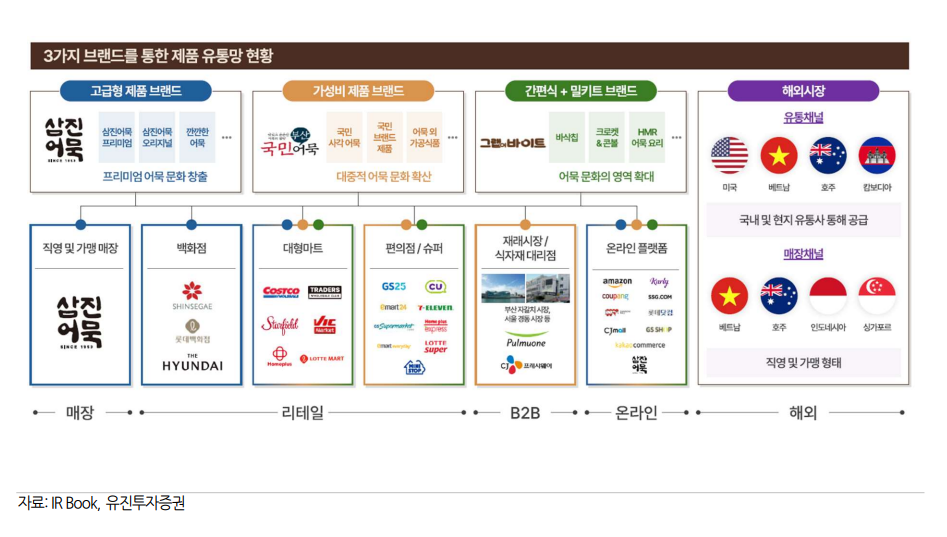 업계 최초로 '어묵 베이커리' 매장과 어묵 체험관을 운영하고, 가정간편식(HMR)·수산 단백질 고영양 제품·상온 어묵 등 다양한 제품 개발을 통해 시장을 지속해서 확장 중이다.
