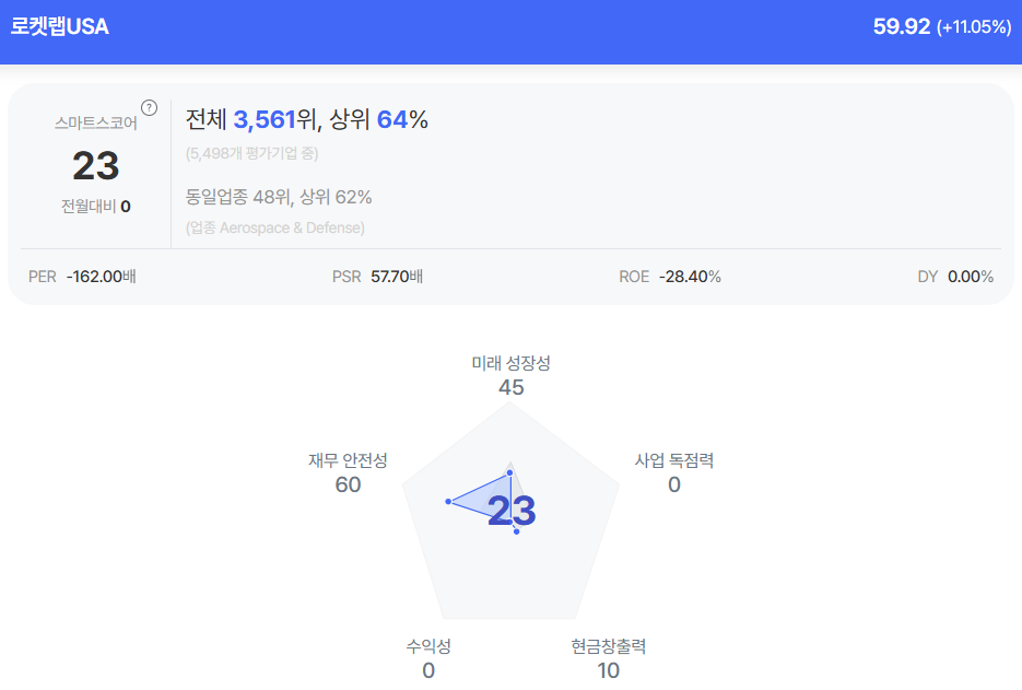 | 로켓랩 종목진단 (출처=초이스스탁) |